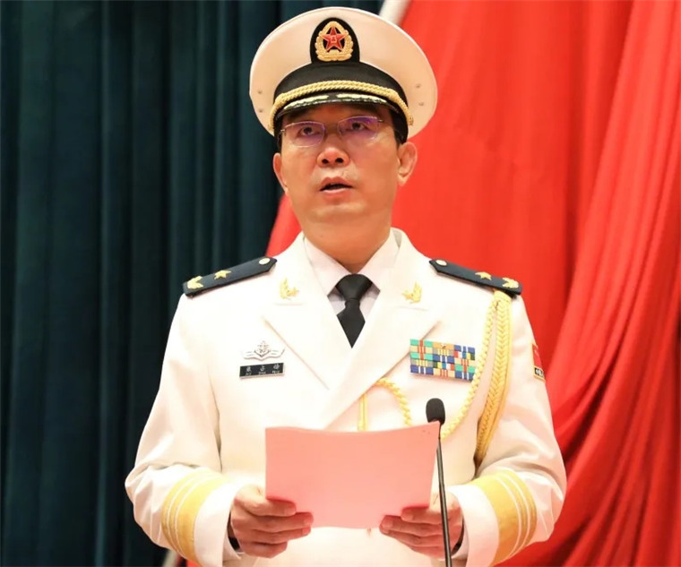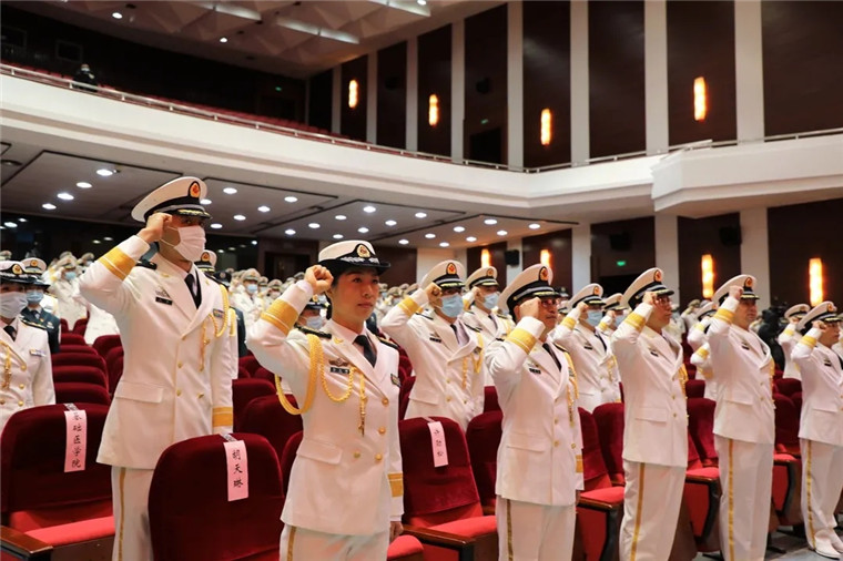 “我是中国人民解放军军人,我宣誓……”,鲜红的军旗下,全场官兵高举右拳,在刘斌副校长领誓下郑重宣誓《军人誓词》