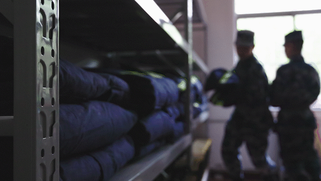 随着一声令下,常人用几分钟才能穿上的消防服,学员几十秒内就完成了“变身”。争分夺秒间,学员们摇身一变成了“消防员”。
