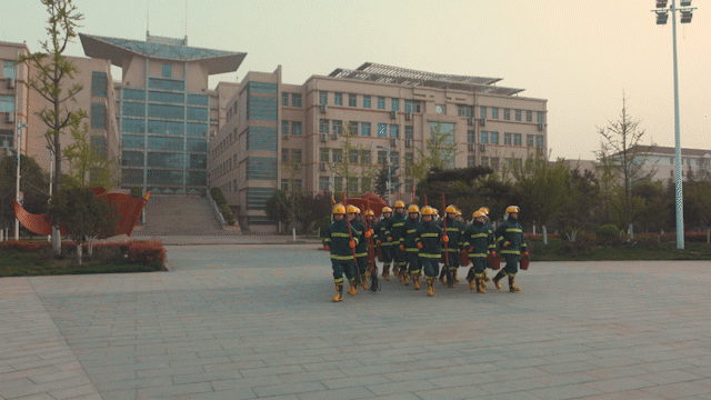 “嘟——消防分队集合保障!”消防应急警报声响起,寂静的营区一下子变得喧闹起来,官兵快速集合,消防分队整装待发。