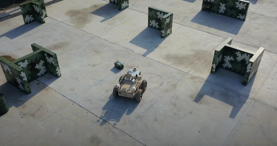 距离任务结束还有25分钟,王立轩头上渗出了豆大的汗珠。此时头顶无人机盘旋,正全力寻找“敌方”位置,无人车也伴随跟进,只要敌方一“冒头”,无人车就能将其“秒杀”。