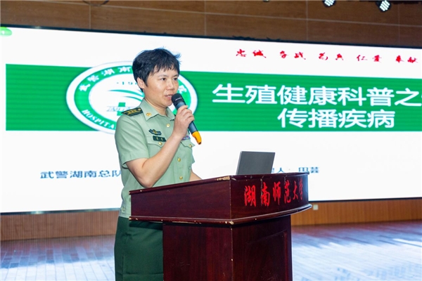 在湖南师范大学励德楼大礼堂内,总队医院为2023级新生们精心准备了生殖健康知识和心理健康知识讲座。为方便学生们理解、接受和参与,妇产科医生田芸、医学心理科心理咨询师陈群提前调研,用通俗易懂的语言对疾病的传播方式、临床症状、预防措施以及注意事项进行讲解,并给学生开展思维引导,进一步提高学生对自身生理、心理问题的识别能力,切实增强健康管理能力。此外,医院还精心挑选了8个特色强、业务精、社会需求大的科室,邀派15位具有丰富经验的专家、骨干医护人员参加,为师生健康提供专业咨询和高水平、个性化的医疗服务。