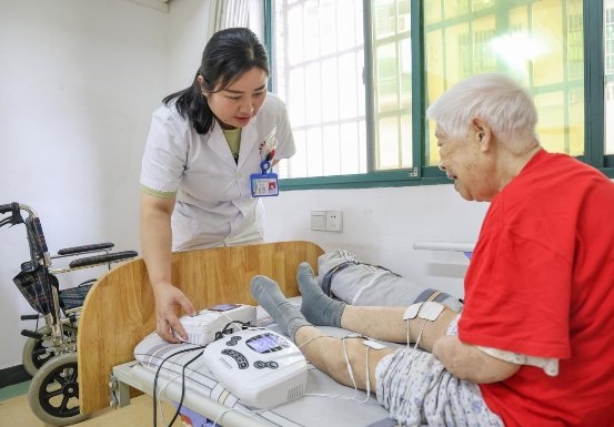 在普亲先锋老年养护中心义诊活动现场,医院20余位专业医护人员,通过骨质疏松管理、慢病管理(高血压、冠心病、糖尿病等)、康复管理等多个等内容开展义诊。针对高龄患有高血压、糖尿病的老年患者,医务人员现场对其体检结果给予面对面反馈,“一人一策”制定保健方案,前移服务关口,将老百姓需求高、实用性强、通俗易懂的健康全周期科普知识和护理技能送到群众身边,精准打通服务保障的“最后一公里”。