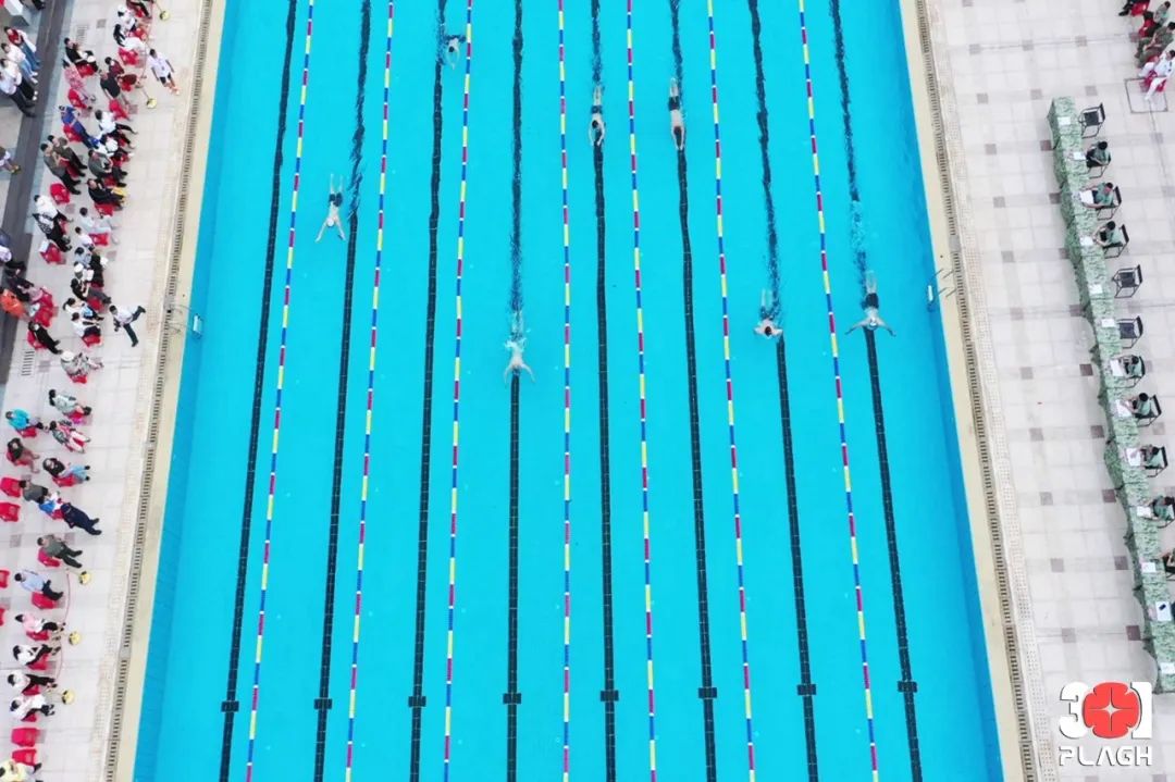 蹬腿、滑行、换气,一个个矫健身姿跃入碧波;翻转,吸气、冲刺,一朵朵晶莹浪花竞相绽放。泳道中水花四溅,“弄潮儿”劈波斩浪、你追我赶;泳池旁掌声不断,官兵员工热血沸腾、加油鼓劲。