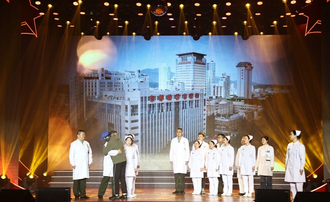 情景剧《以爱为家》改编自烧伤整形科真实事件,将时间拉回乙巳蛇年春节前夕。万家团圆时,一场“生命保卫战”在医院打响。舞台上,医护人员告别家宴、火速返岗的抉择被细腻刻画,“医院即家园,病患即亲人”的大爱,在紧张救援与温情关怀中磅礴迸发。