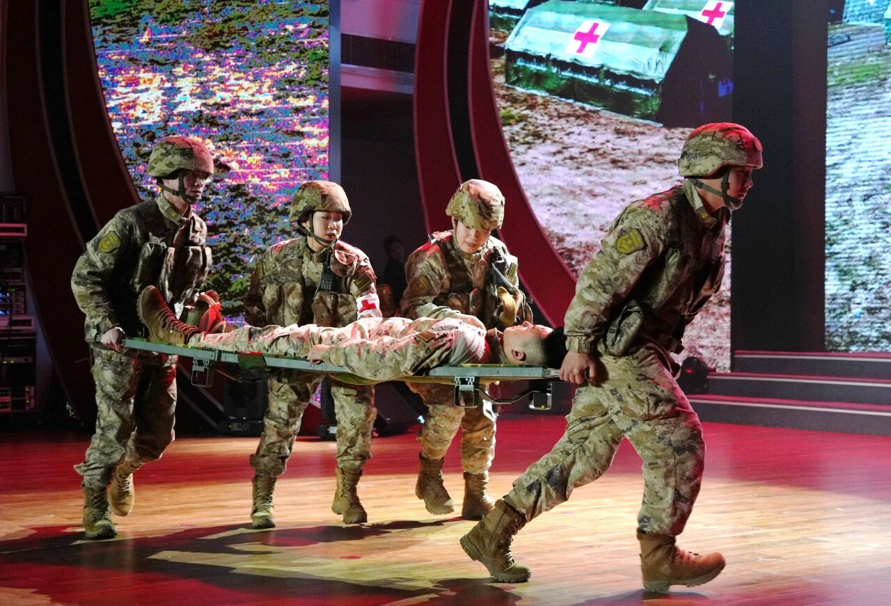 晚会艺术表达匠心独运,充分运用现代舞台技术增强感染力。短剧《一路冲击》采取全息影像“人屏互动”模式,革命前辈孙凤矩的峥嵘往事通过历史影像重现,与当下卫勤官兵实战化训练场景时空交错、同频共振。跨越年代的对话,生动揭示红色基因如何在一代代东总人血脉中奔流不息,化作练兵备战、保障打赢的不竭动力。