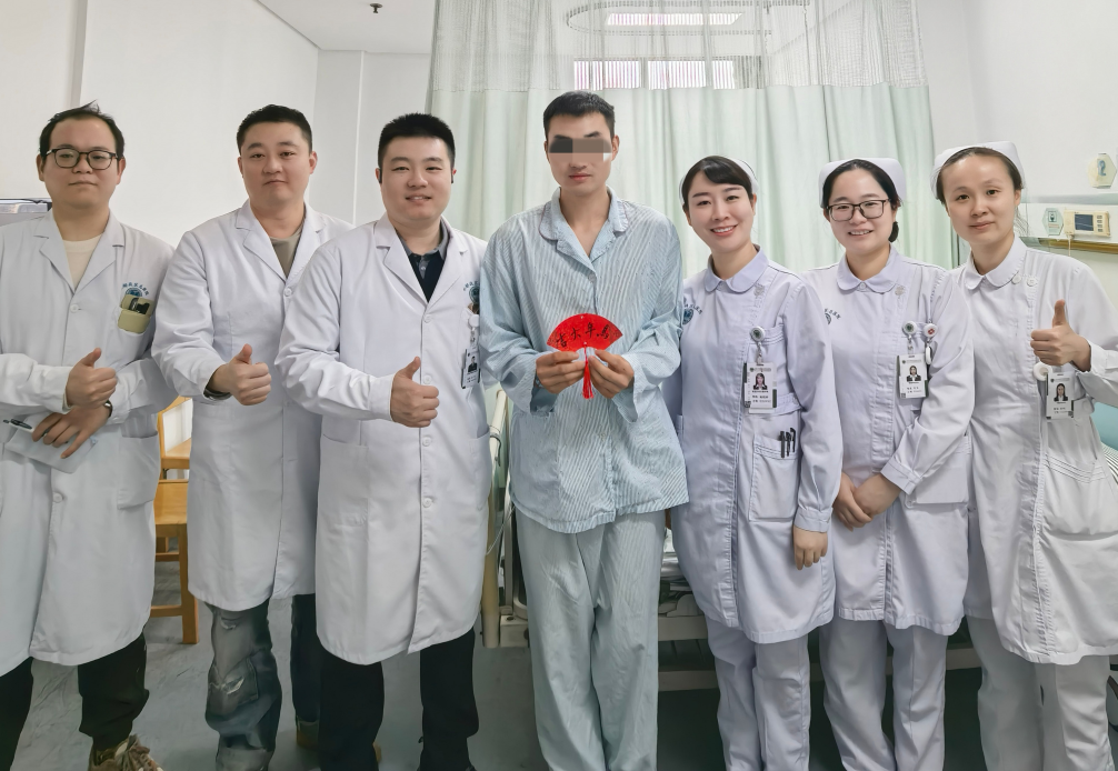 来自安徽宿州的杨大叔令人印象深刻。他因“门静脉积气、严重腹腔感染”通过玄武院区腹痛中心来院,入院时已出现脓毒症,肾脏、肝脏等多器官功能损伤,乳酸水平异常升高,且需血管活性药物维持血压,生命垂危。面对这一病死率极高的“死亡之征”,普外8病区郝帅主任带领科务团队黄金健副主任医师、王健医生迅速启动腹痛绿色通道,抗休克的同时快速完成术前评估,精准判断杨大叔因肠缺血坏死继发严重腹腔感染脓毒症,而较高的乳酸水平更预示着高死亡风险,亟需通过手术控制感染源。基于损伤控制策略,急诊手术精准切除了坏死肠管并行保护性造口,为患者赢得了生机。术后,医护团队日夜坚守,通过精细化抗感染治疗、器官功能支持以及营养支持,最终让杨大叔转危为安,日前已顺利还纳造口,康复出院。