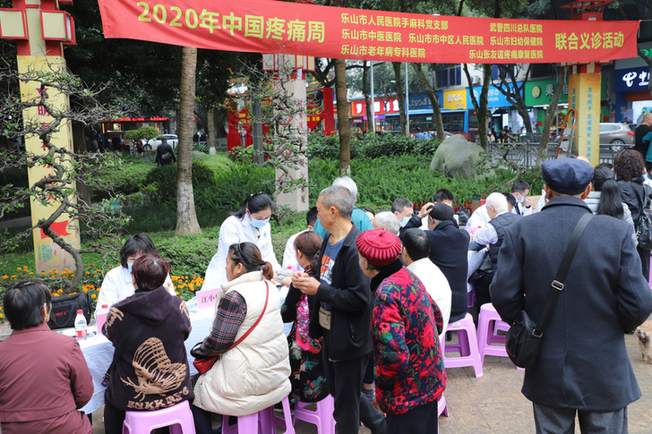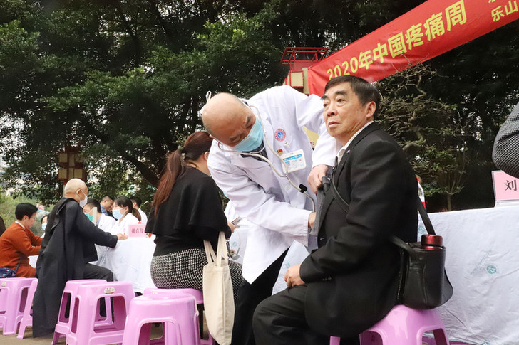 在活动现场,前来咨询患者络绎不绝,来自乐山市各大医院的20多名疼痛科专家亲临现场,耐心细致地为患者免费诊治,就各类慢性疼痛的咨询、筛查、诊断,疼痛相关健康知识给到场的患者和家属进行现场宣教,还针对老百姓常见的颈肩腰腿疼痛、颈腰椎间盘突出症、肩周炎、颈源性头痛、三叉神经痛、带状疱疹后神经痛、骨关节炎、风湿类风湿关节炎、癌痛等顽固性疼痛及自主神经功能紊乱等疾病,以及创伤及手术后疼痛,进行了答疑解惑及必要的初步治疗。一位60多岁的王大爷说:“我膝关节疼痛很多年了,疼得时候总是忍着,直到忍不了了才上医院,听了专家解释,我对骨关节疼痛了解更深入了,也知道骨关节疼痛时该怎么做了。”
