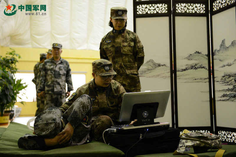 王晶为战士进行颈动脉检查。中国军网记者 柴潇/摄