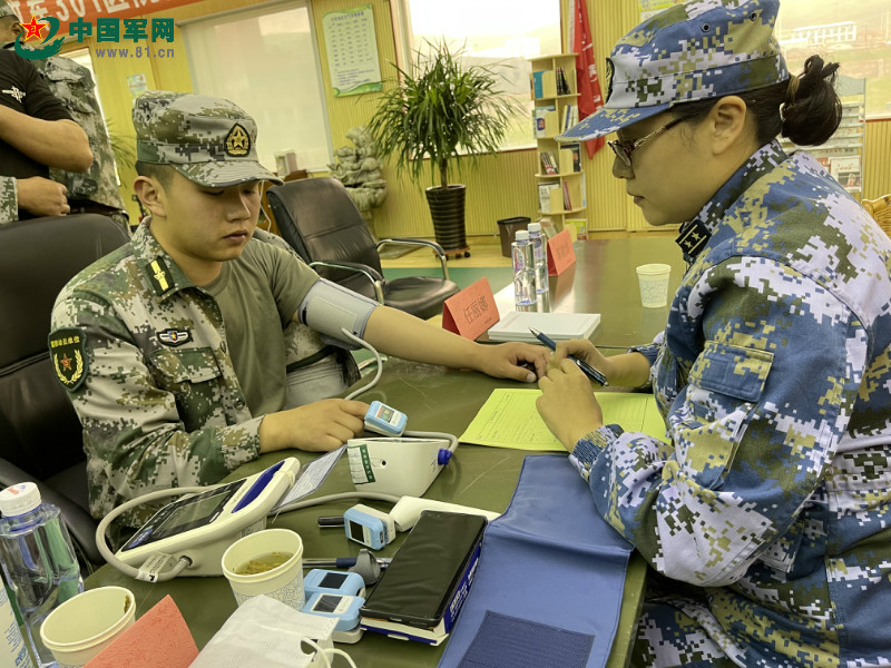 任丽娜为战士进行血压测量。中国军网记者 柴潇/摄