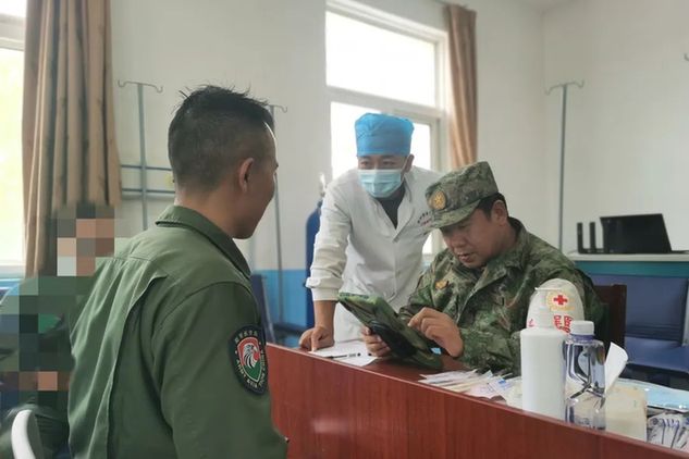 △临床免疫科专家郑朝晖在为高原官兵看诊