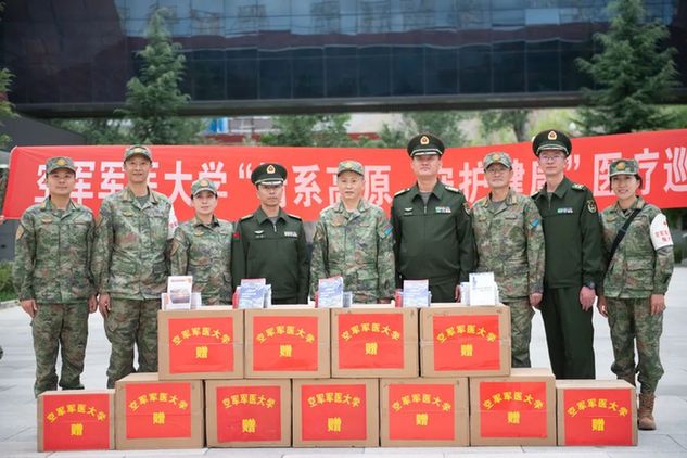 △高原官兵为医疗队队员献上哈达、送来锦旗