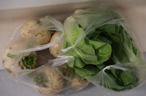徐朝金老人为医护人员送来的蔬菜