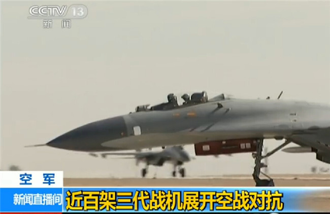 主持人:接下来我们把目光投向空中,先来看看空军一场军演的现场。在西北大漠,空军历史上最大规模、超强度的空战对抗激烈展开,对抗出动了三代战机近百架,随机抽取飞行员互为对手空战对抗,以此来检验部队的日常训练水平,有效提升空军航空兵遂行任务的能力,推动训练进一步向实战化发展。
