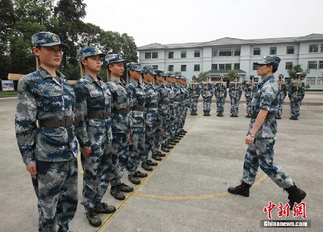 对部分军姿不规范的新兵,新训骨干采用一些简易器械进行校正。易开红 摄