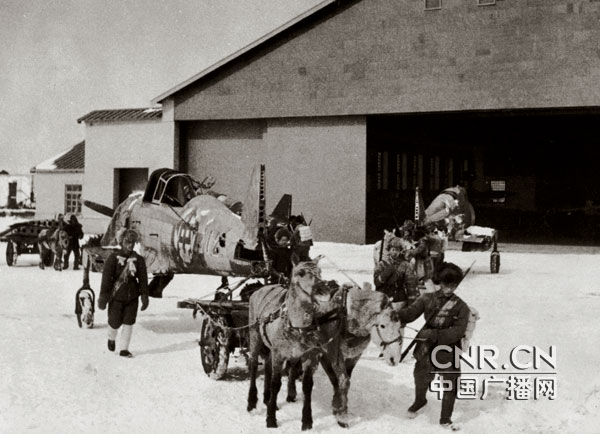 用马车拉运飞机和航材转场