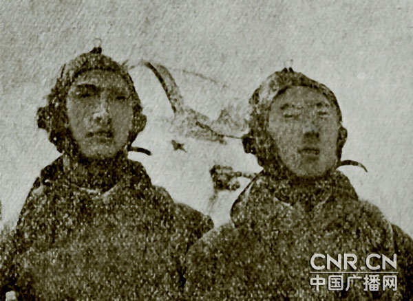 1952年9月20日,空军某师飞行员何中道(左)、李永年在上海地区上空击落美空军B-29型轰炸机1架,这是空军执行国土防空作战任务以来首次击落入侵敌机