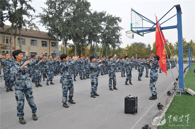 训练间隙,女新兵们还给男战友们“舞”上一曲。袁朋摄影