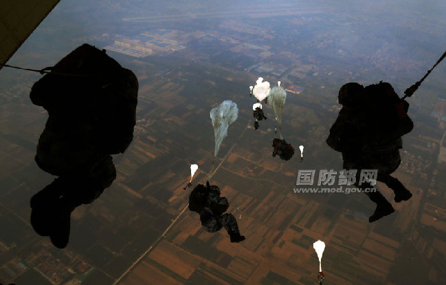 伞花下面是帅气的兵哥哥 英勇的空降兵!