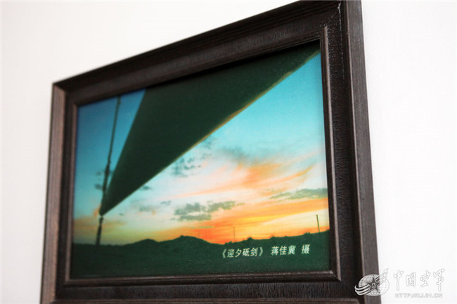 在成空航空兵某团的空勤宿舍楼走廊墙上,挂着蒋佳冀在执行任务间隙采风拍摄的一张照片。