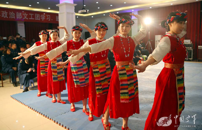 空政文工团慰问官兵 女兵着军大衣敬军礼超有型