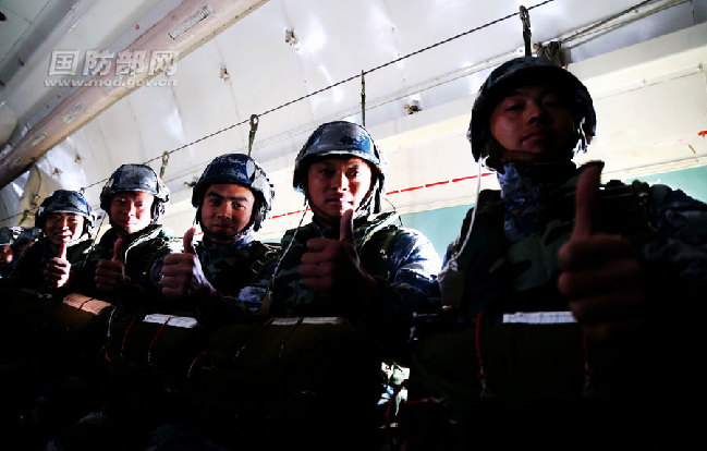 空降兵某部成建制跳伞 黄河上空伞花朵朵