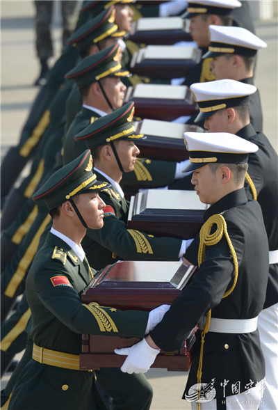 中韩双方举行中国人民志愿军烈士遗骸交接仪式。