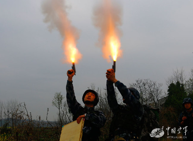 “01,01,我是06,距我×米,发现无人侦察机向我飞来!”尖刀班长杨超勇向指挥部报告。接到敌情后,指挥员下达命令“命令部队就地疏散隐蔽,听令出发。”5分钟后,敌情警报解除,随着两枚信号弹升空,部队继续出发。