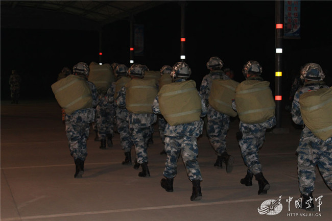 凌晨时分,伸手不见五指,官兵们已全副武装,摩托化行军至中原某军用机场,整伞、背伞、机场检查、登机,一整套流程严谨细致、紧张有序,战机马达轰鸣、掠过天际,朝阳初升,将士已出征。
