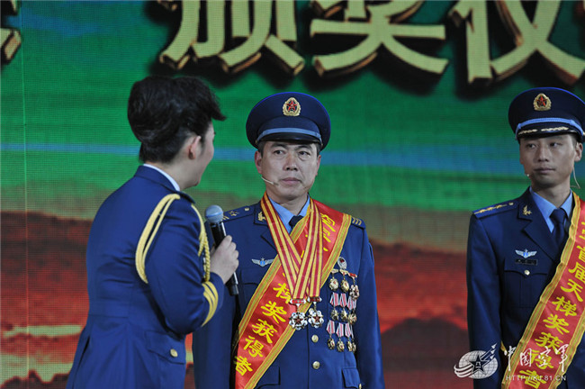 空军首届“天梯奖”安全把关能手获得者、二级军士长郝端刚,满身的军功章凝聚了一名老机务兵的忠诚与智慧。(余红春摄)