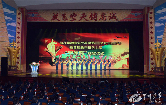 空军首届“天梯奖”12名获得者宣读倡议书,向全体机务官兵发出“放飞空天铸忠诚”倡议。余红春摄