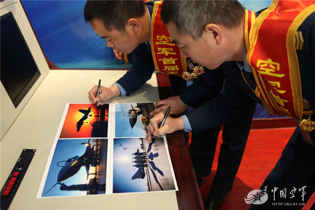 空军首届12名“天梯”奖获得者做客中国空军网,签名留念。欧冠豪摄