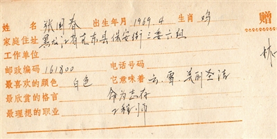 张国春上军校时写给同学林旭的赠言:命为志存。