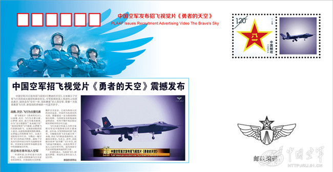 《中国空军发布招飞视觉片<勇者的天空>》纪念封。