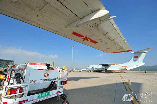 4月27日至5月4日,空军派出8架伊尔-76飞机投入尼泊尔抗震救灾,共计飞行20架次,将中国政府紧急援助尼泊尔第一批救灾物资,中国军队的地震救援、医疗救护、防化防疫等抗震救灾力量和救灾装备、救灾物资,空运至加德满都机场,把中国人民的深情厚谊“速递”给尼泊尔灾区民众。