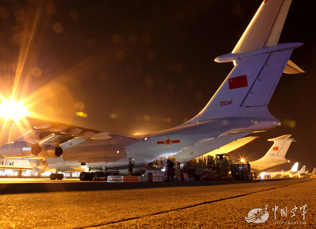4月27日夜,中国空军伊尔-76飞机运送医疗队和救援人员抵达尼泊尔加德满都机场。周建华摄
