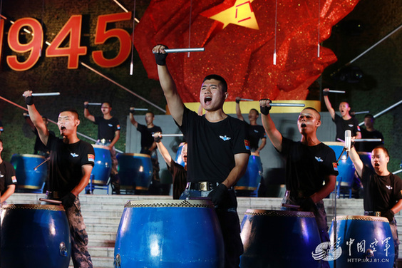 空军某通信团表演《强军战鼓》。