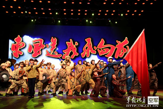 一段辉煌历史的艺术再现,一曲激情澎湃的军魂颂歌,一部催人奋进的精神大戏。连日来,由沈空创作编排的主题音乐情景剧《东风送我飞向前》,为官兵送上一份“精神大餐”,在军内外涌动起一股红色潮流。