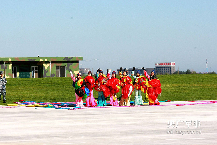 “八一”跳伞表演队队员完成表演后向观众挥手致意。刘成 摄