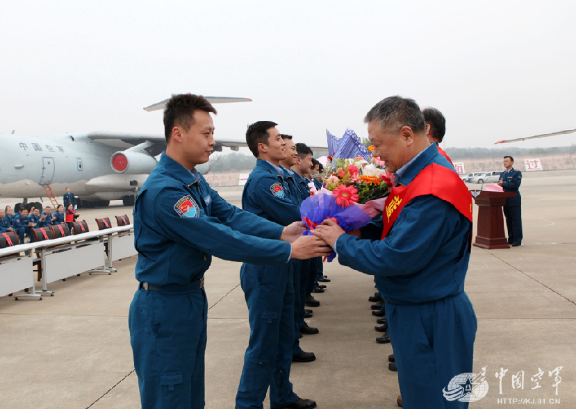 “老飞们”接过新飞行员手中的献花和敬意。周建华摄