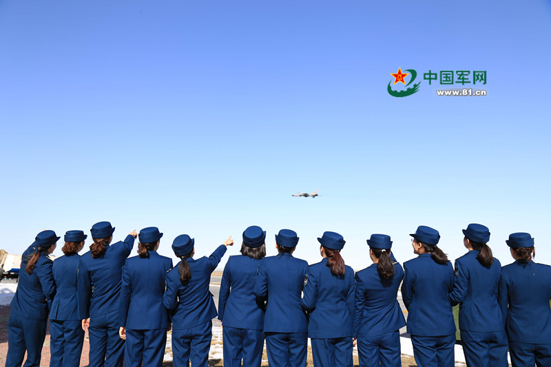 “看,飞起来了。”家属们看到战鹰雄伟的英姿高兴地喊道。