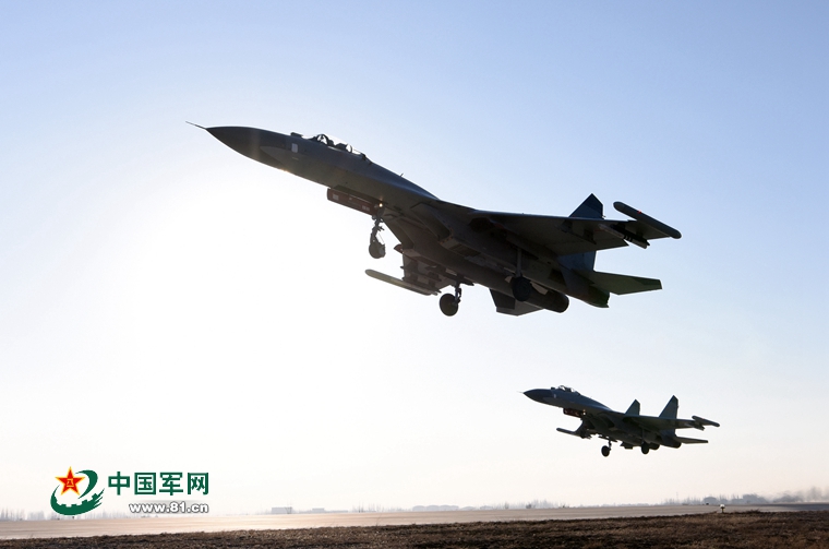 中国军网讯 (陈庆顺)1月7日,西北某机场寒风凛冽,滴水成冰。上午9时30分,随着指挥员一声令下,空军航空兵某团数架战机依次起飞,以雷霆万钧之势呼啸升空。