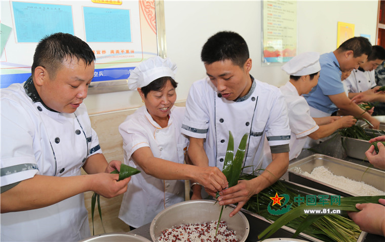据悉,这3位“兵妈妈”从事烹饪30多年,都具有国家等级证书。现年67岁的“兵妈妈”张银儿,擅长“杭帮菜”,其中西湖醋鱼、东坡肉、龙井虾仁是自己的拿手好菜,同时大锅菜制作也有着丰富的经验;现年65岁的“兵妈妈”闫桂香精通北方菜系,擅长面点制作;现年59岁的“兵妈妈”凌阿英,擅长苏州菜系。这次,她们把手把手教官兵包粽子,精心传授制作地方特色菜,让远离家乡的官兵也能在端午节品尝到家乡的特色菜。