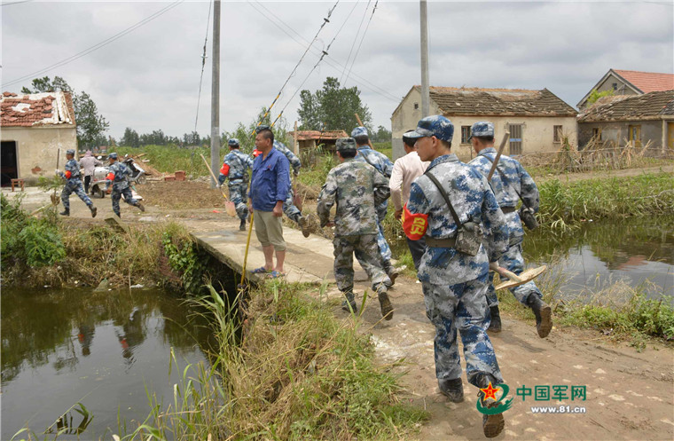 6月28日11时,盐城射阳县伍份村一村民家中着火,正在参加抢险救灾的北部战区空军导弹某营官兵第一时间向起火点跑去,疏散群众,设置隔离带,并与随后赶来的消防人员一起扑灭火情。