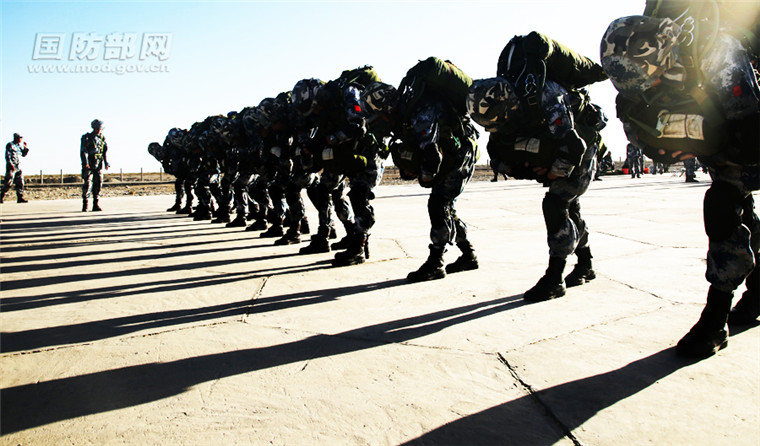 试跳员们背上降落伞后仍抓紧点滴时间训练。