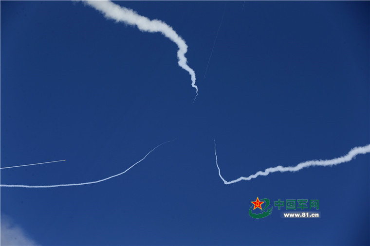 追击目标:多枚导弹向同一个目标追击。 江俞硕 摄