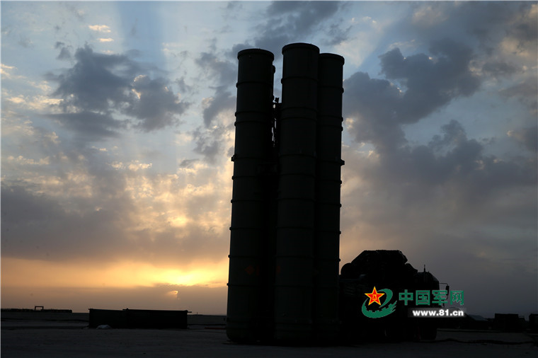 引弓待发:清晨红霞漫天,导弹引弓待发。 罗子龙 摄