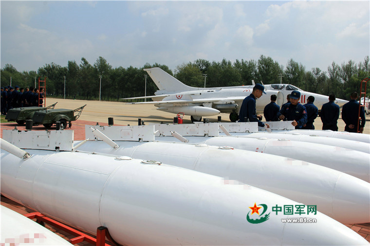 战机梯次划出,机务人员快速进行副油箱装挂准备。