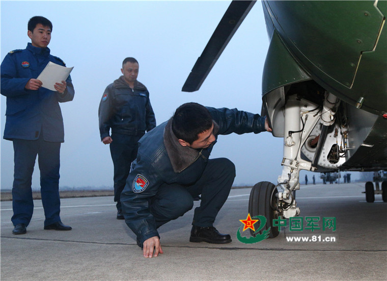 开飞前,飞行学员张宏驰检查接收直升机。