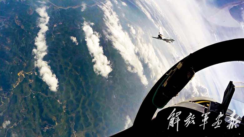 “明白!”只见战鹰迅速翻转,大幅度向后拉出一道弧线,随后突然上升,如过山车般划过一个圆圈,接着向上又拉出一个半圆弧线后,改平迅速加力出击。一套空中格斗抢占先机的特技动作,完成得干脆利落。