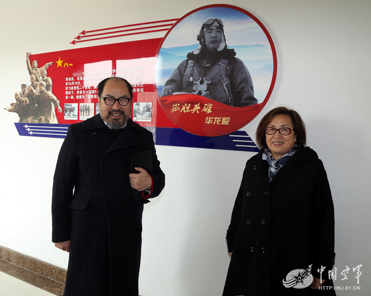 华林、华山姐弟俩站在以父亲华龙毅命名的“孤胆英雄”大队走廊上,留下珍贵记忆。